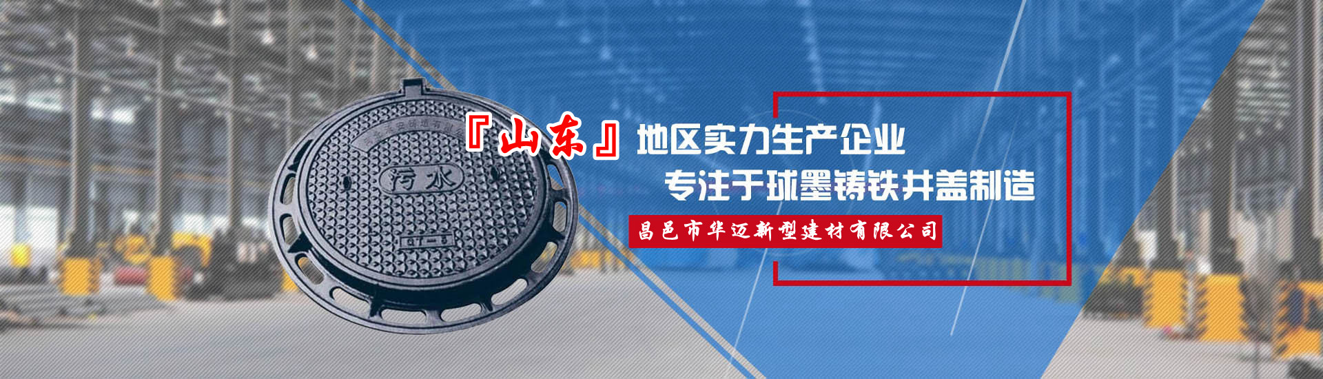 昌邑市華邁新型建材有限公司位于世界風箏之都—山東濰坊,公司前身:昌邑華邁井蓋鑄造廠,這里鑄造產業集群物流園區集群、交通便利、緊靠濰坊火車北站、附近眾多物流園。公司主要鑄造產品:球墨鑄鐵井蓋、市政井蓋、污水井蓋、雨水井蓋、六防、五防井蓋、防沉降井蓋、隱形井蓋、電力檢查井蓋、熱力井蓋、窨井蓋、雨水篦子、鑄鐵溝蓋板、鑄鐵花墻等,產品用料厚實壽長。